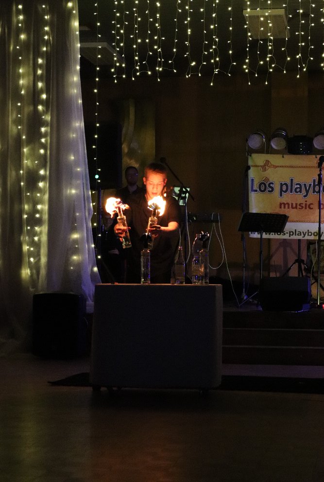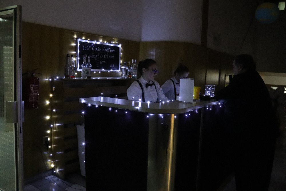 Naše sommelierky zde nabízely ochutnávku vzorků vín, vinného želé, které letos dodalo Rodinné vinařství Bartoník.K poslechu a tanci hrála kapela Los Playboys. Program plesu zajistili maturanti, kteří si pro hosty připravili vystoupení mažoretek Reliké z Kostelan, Ohnivou show a UV show Akáda. Před půlnocí předvedl Flair vystoupení Jakub Adámek z hotelové školy Frenštát pod Radhoštěm. Celý průběh akce a foto-koutek nám zdokumentoval bývalý student Daniel Schuster, děkujeme.