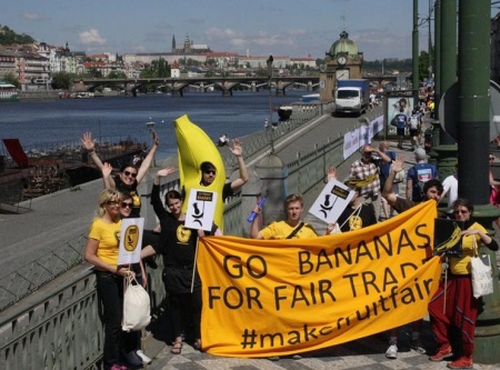 Štafeta běžců v banánových kostýmech apelovala na organizátory maratonu, sportovce i spotřebitele, aby příště dali přednost banánům se zaručeným etickým původem. Na problematiku produkce exotického ovoce upozorňuje kampaň Za férové banány!