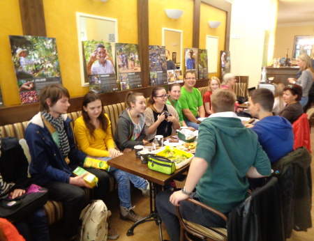 V letošním roce nám sice počasí nepřálo, proto se Férová snídaně přesunula, z Podzámecké zahrady do Café Bistro Matiné. Lidé využili možnost společně posnídat, ochutnat „dobroty“ ostatních, seznámit se s dalšími lidmi, kteří přišli podpořit fairtradové a místní pěstitele. Letošní snídaně se zúčastnili současní a bývalí studenti naší školy i pedagogové.