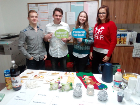 Pro návštěvníky akce „Mikuláš na ZUŠ Kroměříž“ již potřetí připravili studenti naší školy bohaté vánoční občerstvení – kanapky, jablečný závin, domácí věnečky, svařené víno, punč, fairtradovou kávu, čaj, aj. Na prodej se dobře připravili, oblečení a úprava stolů odpovídala atmosféře akce. Všem návštěvníkům občerstvení velmi chutnalo.