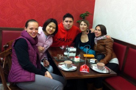 Dne 29. září kolem páté hodiny k nám do Kroměříže zavítaly studentky z Číny, Rumunska, Brazílie a Ukrajiny. Já osobně jsem měl na starost studentku z Rumunska. Slečna vypadala přesně podle mého očekávání a chováním na mě působila trochu uzavřeně. Další den nás čekalo přivítání od učitelského sboru a od pana ředitele a hned potom jsme se všichni odebrali na Pavlákovu, kde čekal studentky program se žáky. I přes neznalost budovy se studentky s pomocí učitelů dokázaly zorientovat a vše proběhlo v pořádku. Po škole mě čekalo představení celé školy Aně a jelikož jí nebylo dobře, rozhodli jsme se, že do okolí Kroměříže se vydáme až v úterý. Ana a další dvě studentky byly ubytované na internátě, protože studenti, kteří si je chtěli vzít domů, byli také internátní. Vpodvečer jsme se všichni společně sešli na pokoji. Ledy byly prolomeny a začal jsem cítit, že si všichni rozumíme a anglický jazyk nikomu problém nedělá. Další den studentky opět čekaly přednášky ve škole. Po škole byla studentkám nabídnuta možnost jít se podívat na praxi v kuchyni, přijaly nadšeně všechny a čas strávený v kuchyni se jim velmi líbil. Po odpoledni stráveném v kuchyni jsme se rozhodli, že všichni společně vyrazíme do místní hospůdky poblíž internátu. Kolem šesté hodiny jsme vyrazili, kolem deváté hodiny jsme se vrátili a čas strávený pohromadě jsme si všichni užili. Ve středu nás čekala v 10 hodin návštěva radnice a přivítání od paní starostky. Na radnici jsme šli s paní Zezulákovou a panem ředitelem, vše proběhlo v pořádku, studentky se dozvěděly něco o historii města a dostaly informační brožurky. Odpoledne jsme se vydali všichni do města přes Podzámeckou zahradu, po cestě jsme navštívili malou zoo, prohlédli si zvenku zámek a navštívili centrum Kroměříže, přes Velké náměstí jsme zavítali do cukrárny na Milíčově náměstí. Poté jsme se vrátili na internát, unavení tak, že jsme nic dalšího nepodnikali. Další den studentky opět čekala přednášková rutina. Po škole nás čekala vycházka do Květné zahrady, i přes probíhající rekonstrukce jsme viděli hlavní část zahrady a studentkám se to líbilo. Po Květné zahradě jsme zavítali na Barbořinu, kde se studentkám líbil výhled, poté už jen cesta na internát, která se nám trochu zkomplikovala, jelikož jsme se ztratili. Po úspěšném návratu na internát jsme šli společně na večeři. Pátek byl pro studentky poslední den na naší škole, po přednáškovém dopoledni si pan učitel Král vzal studentky na vyjížďku do Kojetína a na představení města. V 7 hodin večer jsme já a Ana vyrazili do Hodonína, kde měla společně se mnou a mojí rodinou strávit víkend. Při příjezdu a vzájemném představení se se rodiče se zeptali na věci, které je zajímaly, a protože jsme byli unaveni, šli jsme spát. Další den, jsme se vydali na rozhlednu, kde zároveň probíhaly oslavy vína. Při zpáteční cestě do Hodonína jsme udělali menší zastávku, vysedli jsme blízko jezu a vydali jsme se k němu pěšky. Cesta k jezu kolem Moravy byla hezká, a Ana shledala srub nacházející se na jezu nejhezčím místem, které v ČR viděla. Poté nás čekala návštěva Hodonínského domu umění (cesta do galerie nám zabrala mnoho času, takže nám nezbylo tolik času na celou prohlídku, jak bychom chtěli, ale i tak jsme toho viděli dost). Poté už nás čekala jen návštěva v nedaleké čajovně, kterou jsem vybral na základě toho, že má Ana taková místa ráda. V čajovně se k nám připojili i rodiče a poté jsem jí zavedl do obchůdku, kde jsem jí dal na výběr nějakou památku na Hodonín. Večer jsme vyrazili do místního klubu, kde jsme úspěšně zakončili sobotní pobyt v Hodoníně. V neděli nás čekala brzká cesta do Kroměříže, vyráželi jsme v 11 hodin, ale na internátě jsme čekali do pěti hodin, jelikož zbývající studentky, které jely z Vídně, nasedly na špatný vlak a místo do Kroměříže jely do Prahy, takže jsme s Anou pobyli nějaký čas na internátě a kolem šesté jsem se s ní nadobro rozloučil. Byl to pro mě zážitek a zkušenost a jsem rád, že jsem měl možnost mít takovou příležitost a že jsem poznal lidi z jiných zemí. Také to byla výborná lekce v angličtině a doufám, že v budoucnu budu mít ještě možnost něco podobného opět vyzkoušet.